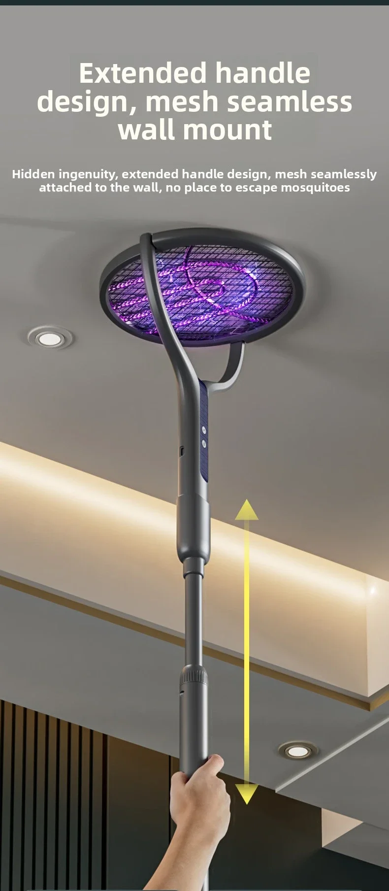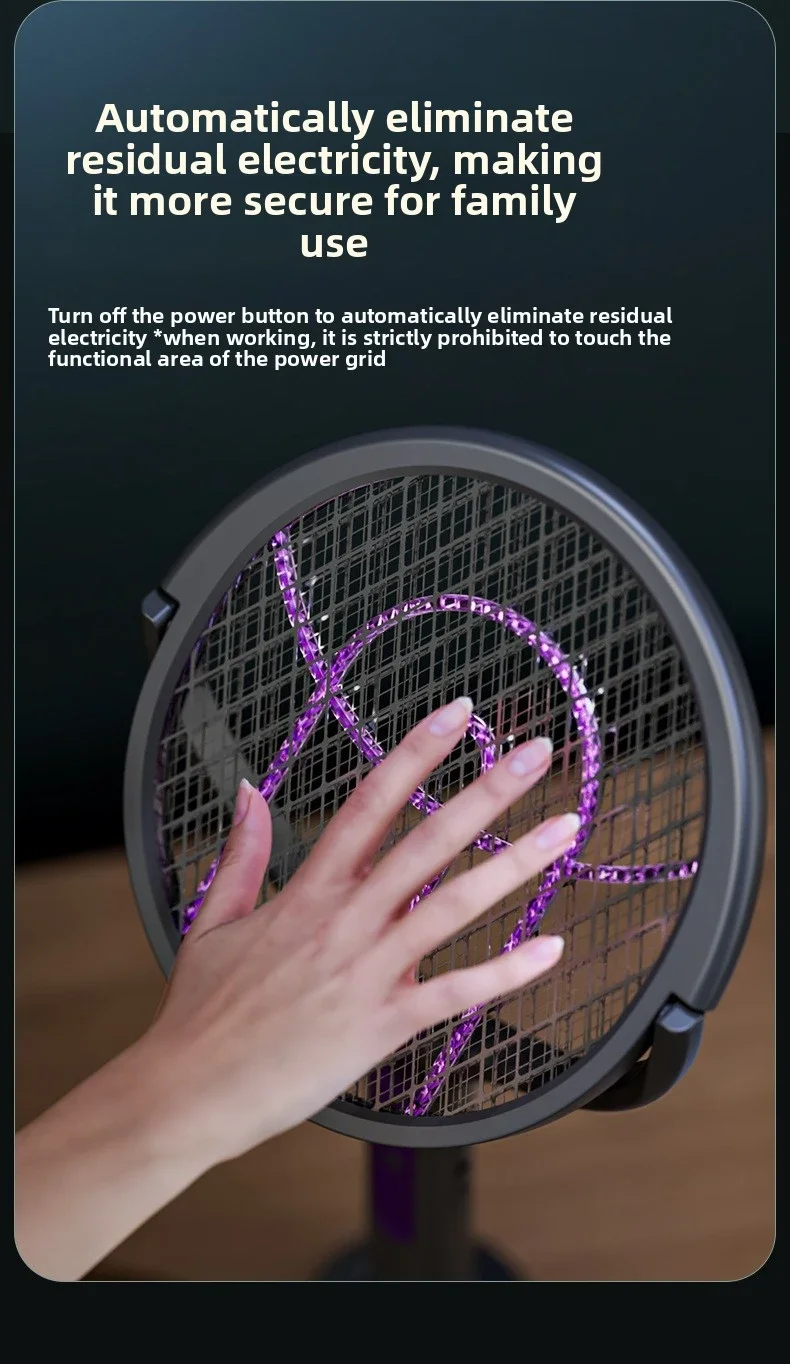 5. Multifunctional usage options: This multifunctional electric flytrap can adapt to any pest control scenario. Handheld, you can catch insects anywhere; stand up to attract insects; or fix them to the wall, which can be used as an efficient indoor pest control device.