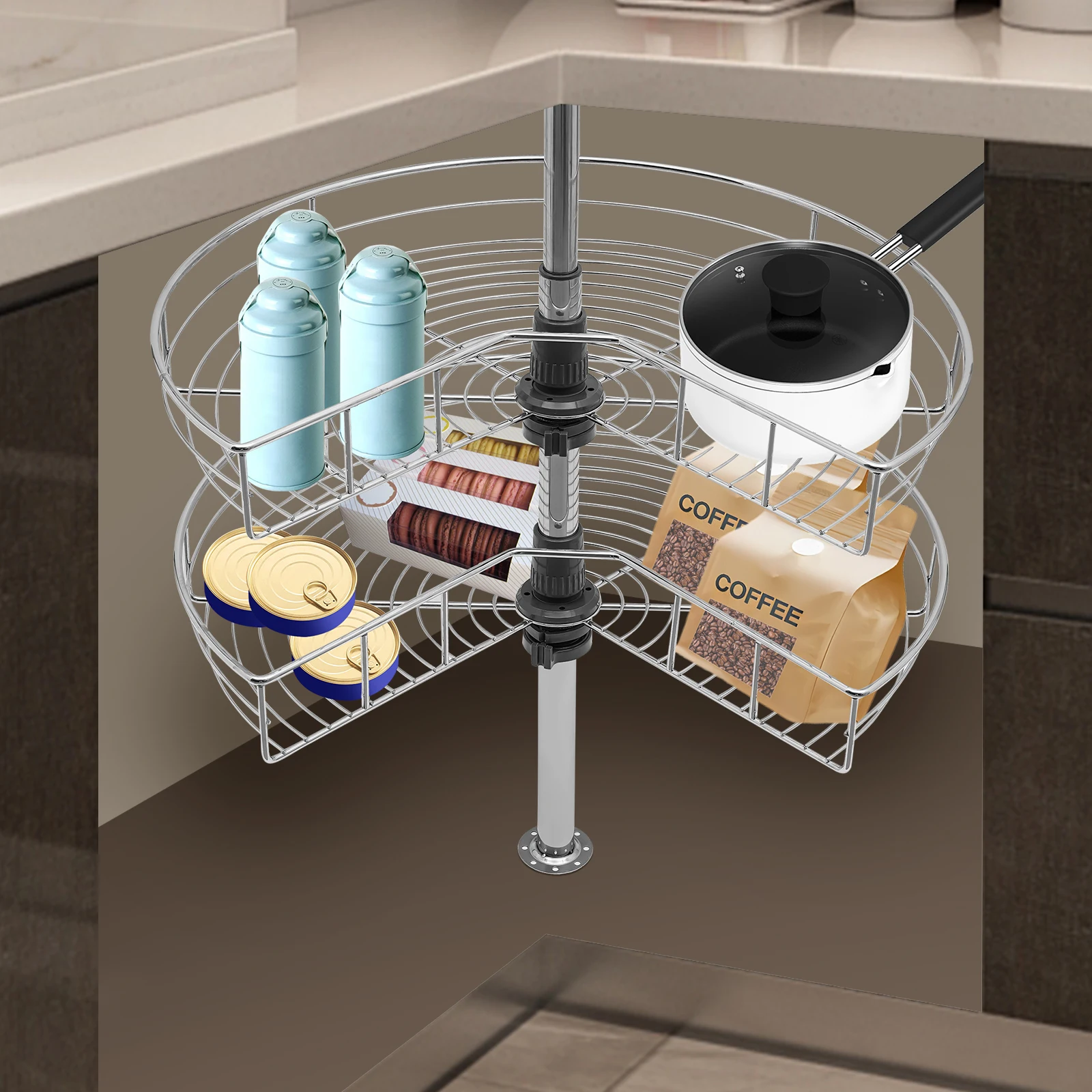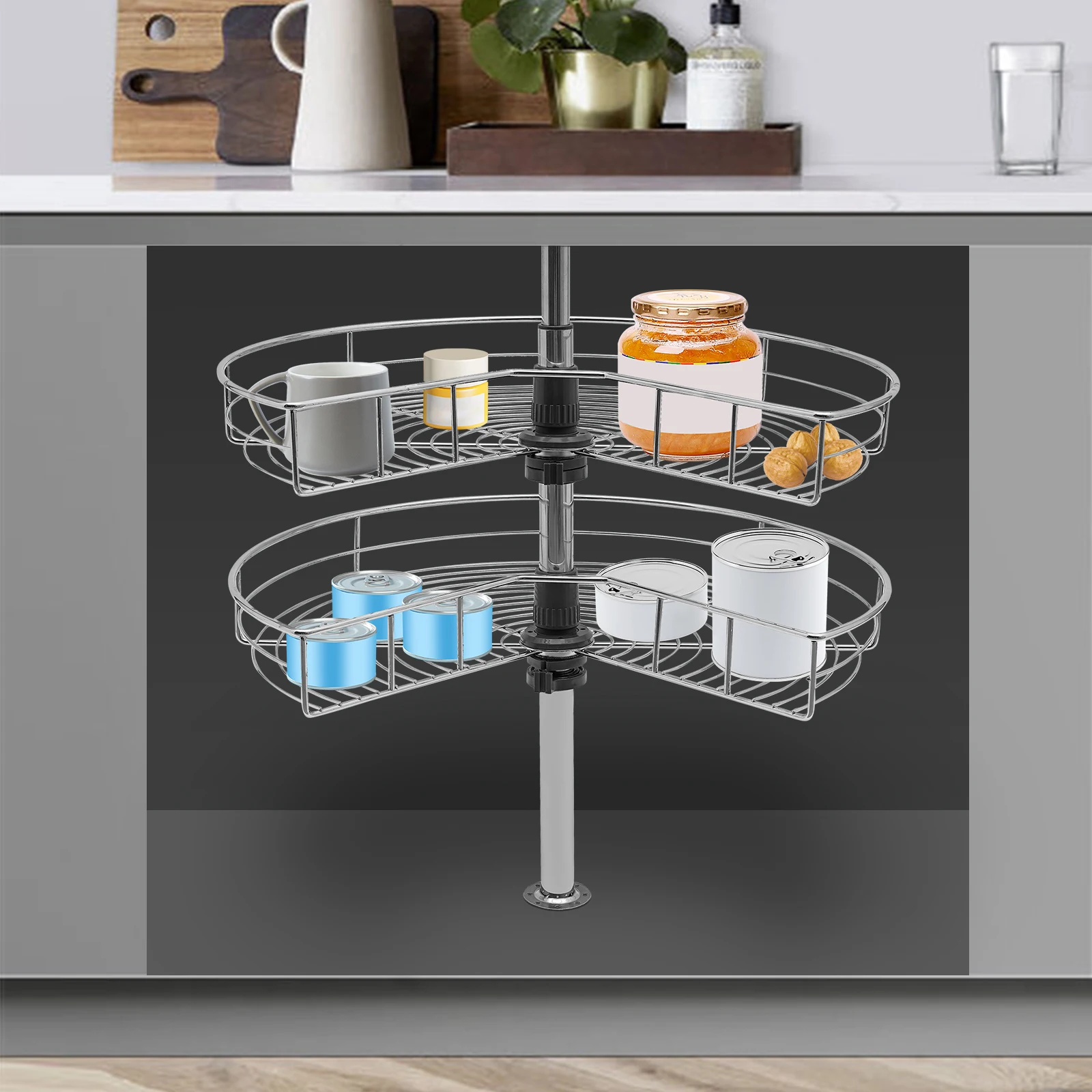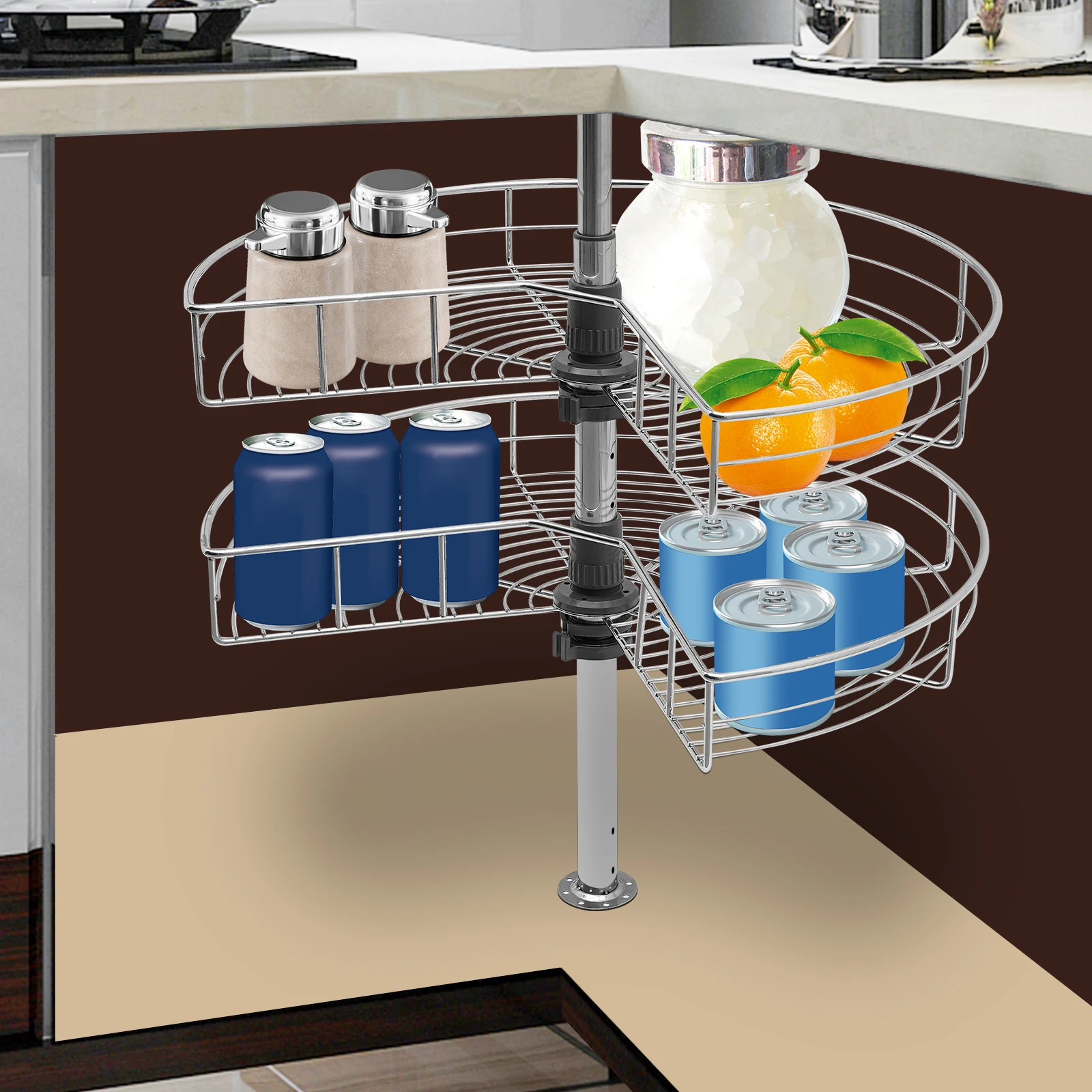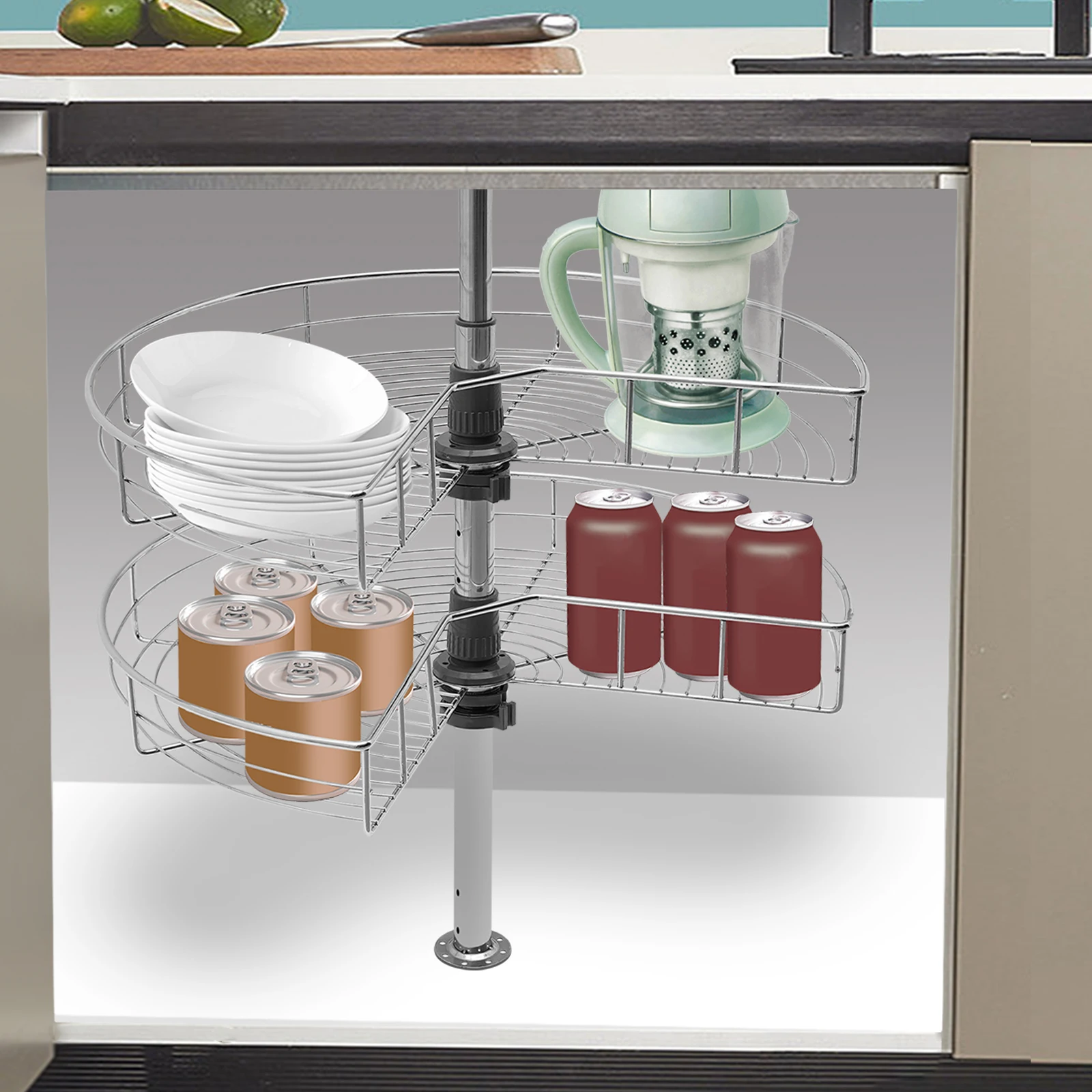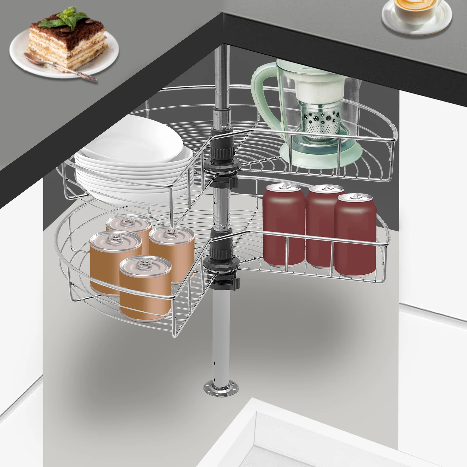 Improve Space Utilization:Â It makes full use of the wasted space in the corner of the cabinet so that you can easily access all the items in the kitchen, making every corner that we easily ignore become our storage space.
