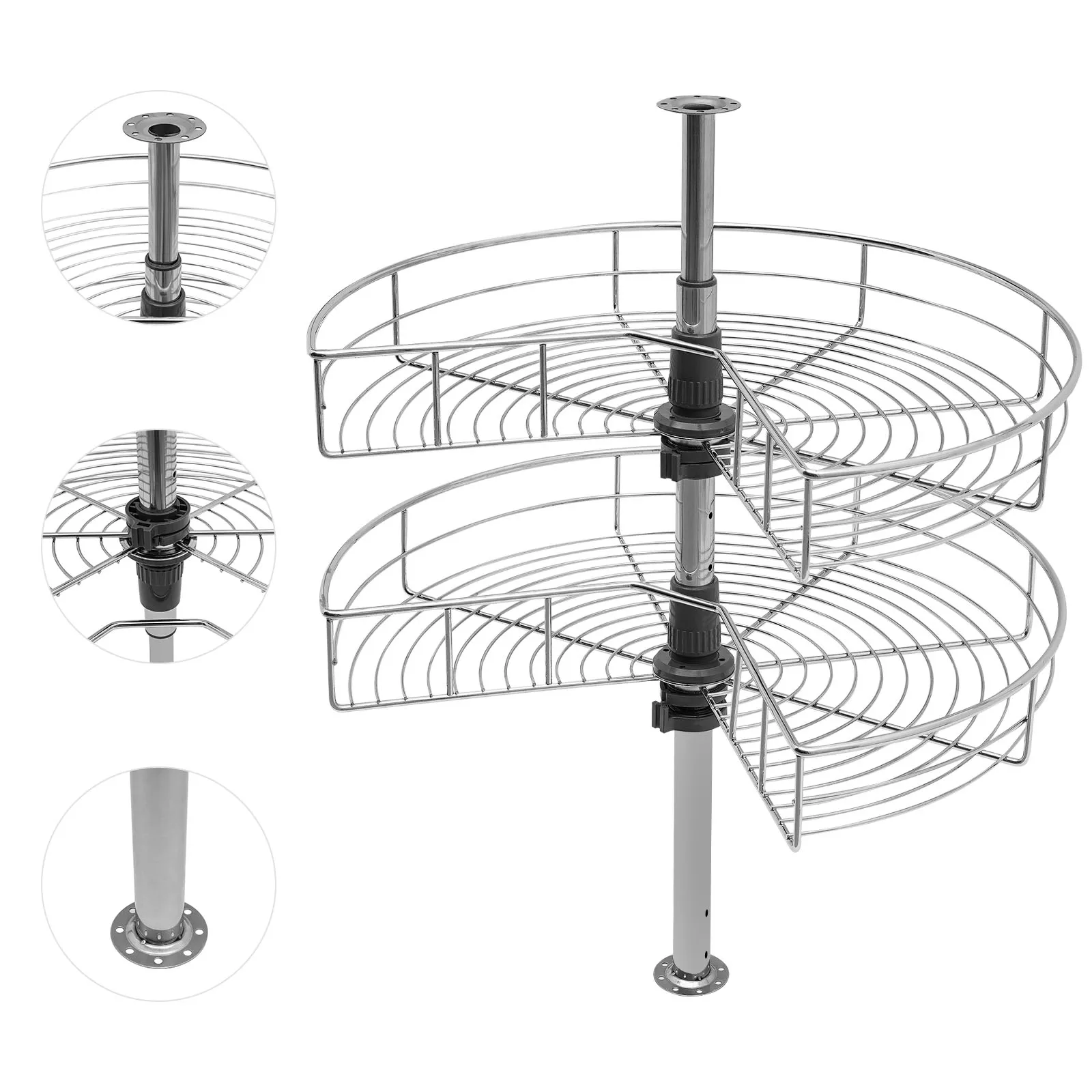 Free Adjustment:Â The height of the tube can be adjusted at will between 22-31inch to adapt to the cabinet space of different heights. The height of two independent racks can also be moved up and down to fix to different hole positions to adapt to different item sizes so that you can make the most of it.
