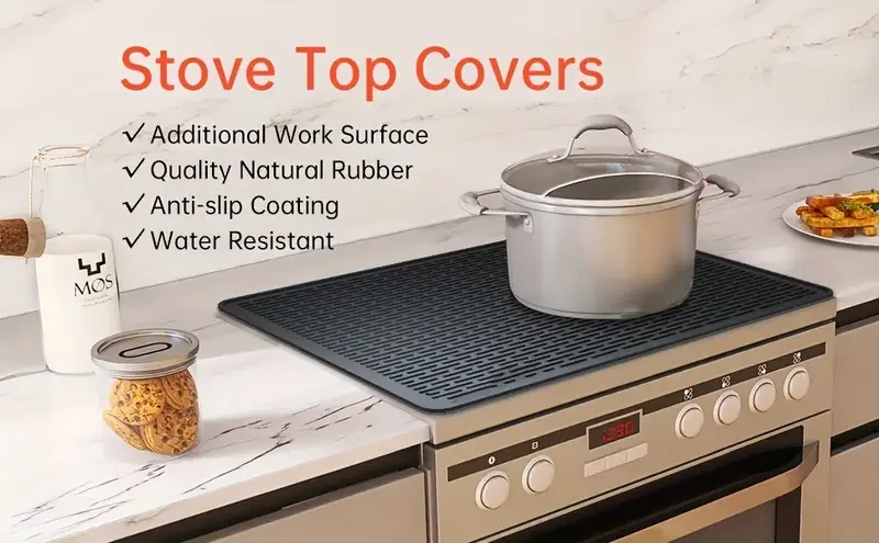 SLIP-RESISTANT DESIGN – Crafted from fabric and rubber, this stove cover features a rubberized base that guarantees stability during use. The elevated patterns on the mat stop items from sliding off, offering extra safety while cooking.