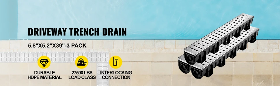 Made of HDPE plastic and stainless steel, the load capacity is A15. It is suitable for driveways. The superior material creates a smooth and durable surface to drain the water away smoothly.