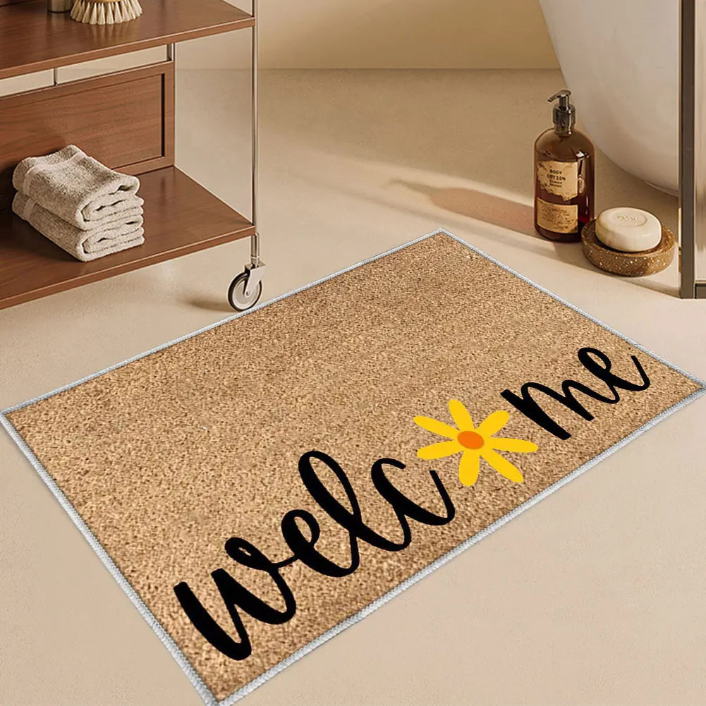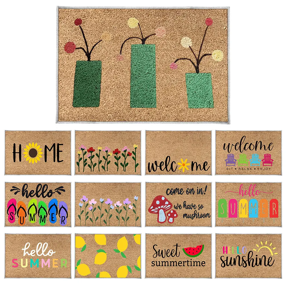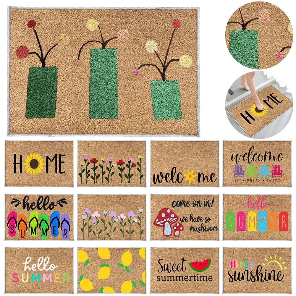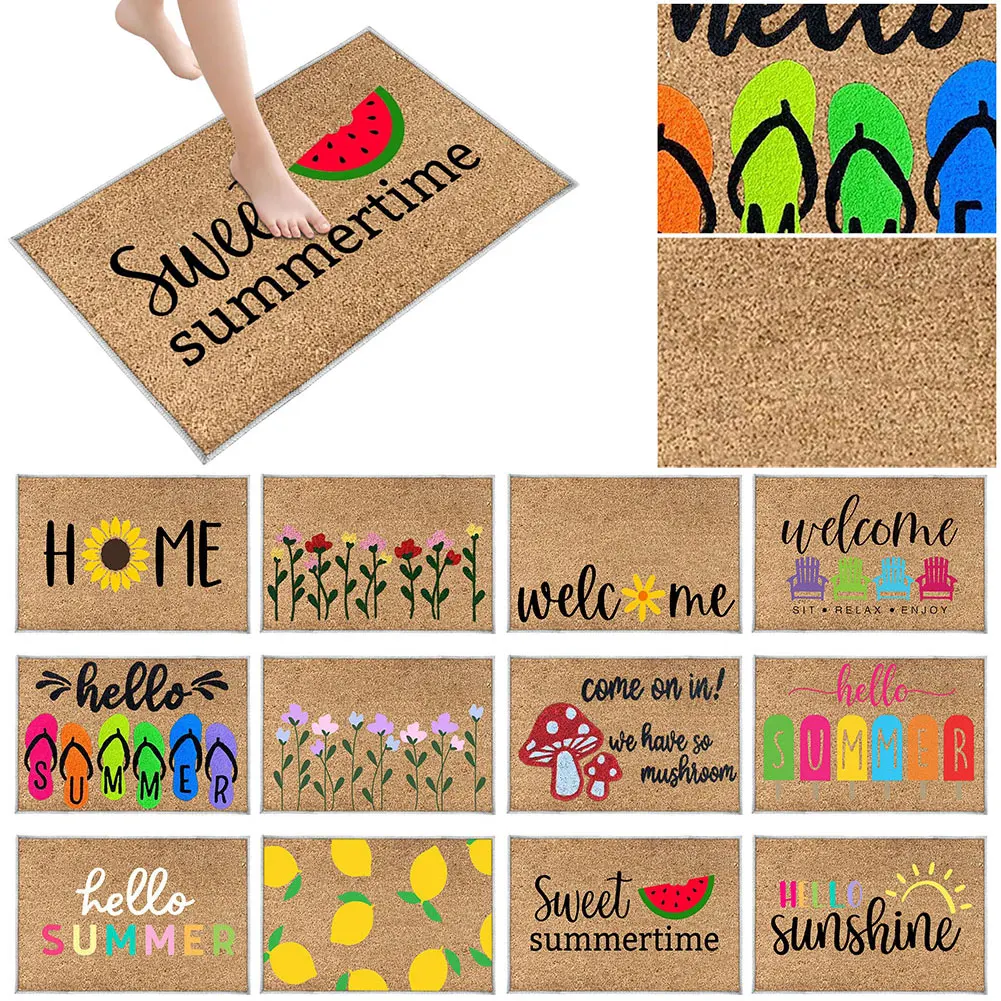 Summer Door Mat Absorbent Hello Door Mat Non Slip Welcome Door Mat Decorative Low Profile Doormat for Bathroom Entryway