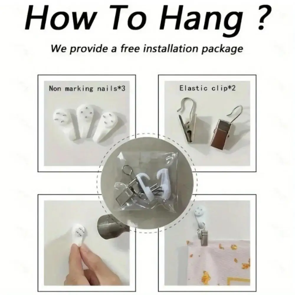 4.ACCESSORIES: equipped with 2 barb clips and 2 non-mark nail hooks