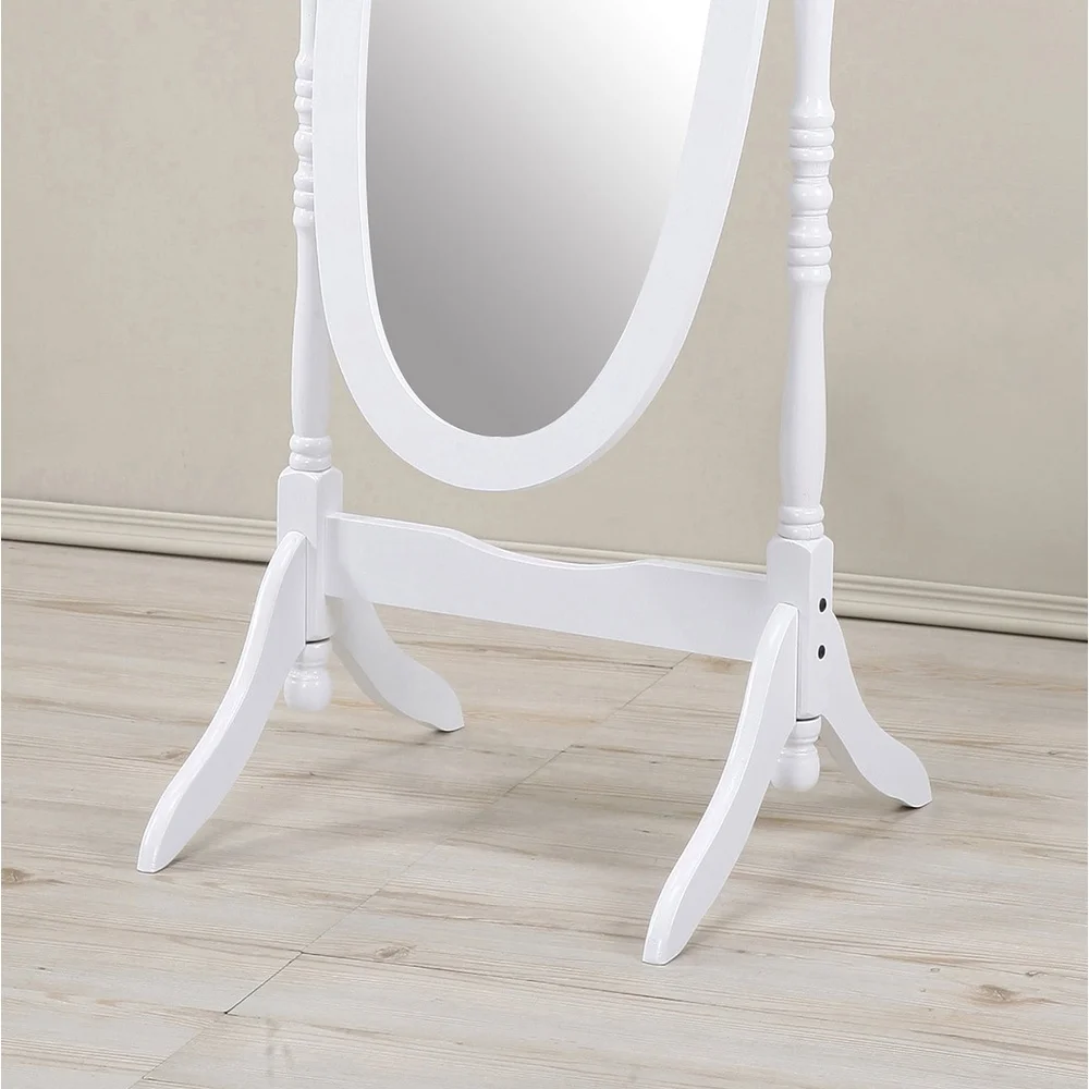 Beautiful white cheval-style mirror for traditional decor tilts for full-body reflection