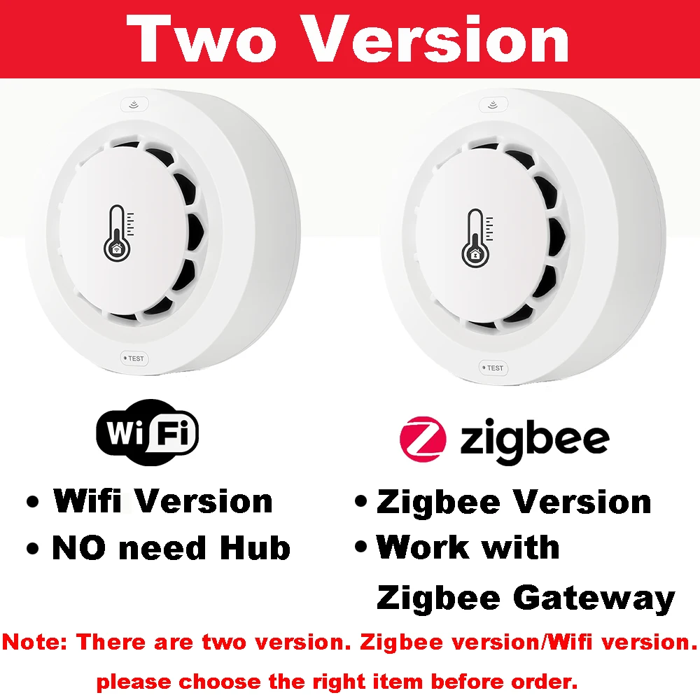 Tuya Wifi or Zigbee BT Two Connection Smoke Detector Temperature Humidity Measurement Device 80dB Sound Alarm Remote Push Alert Function
