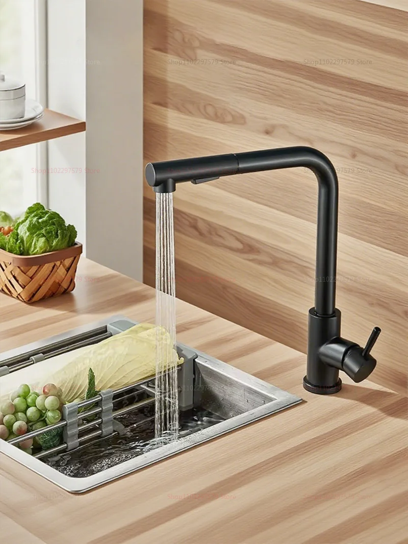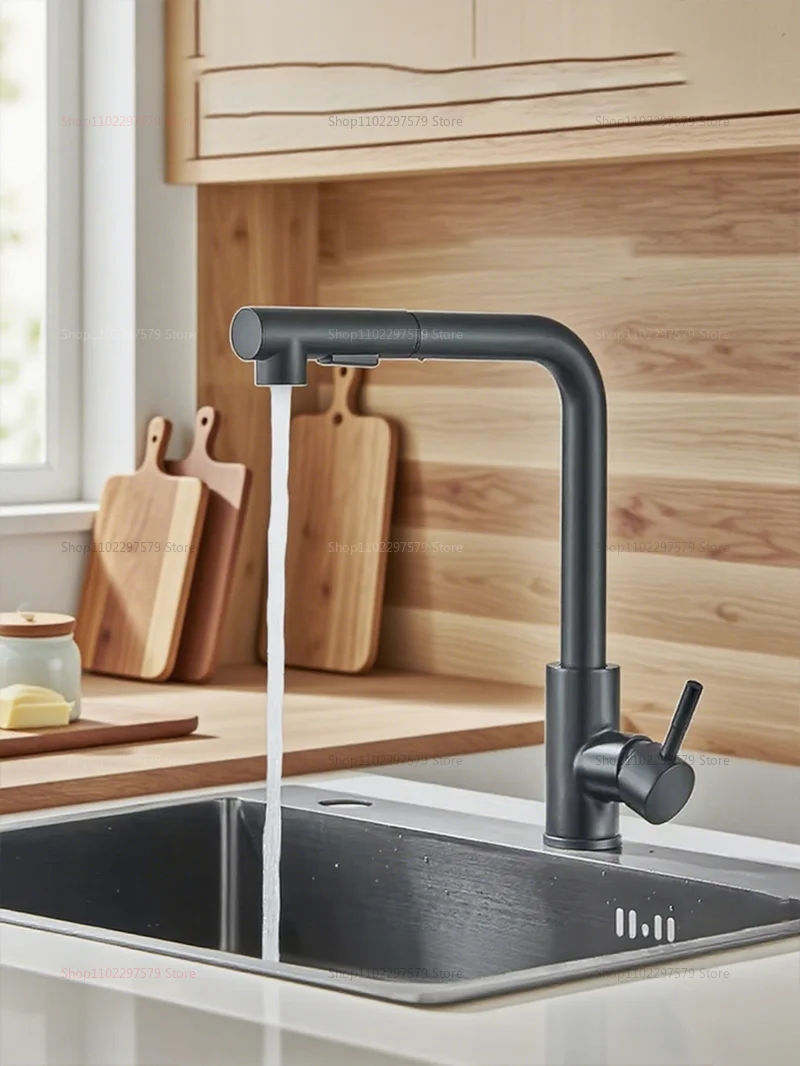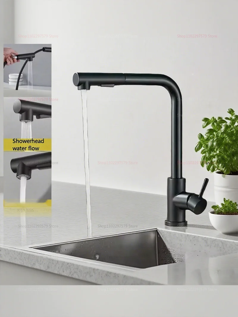 Upgrade your kitchen with this high-quality stainless steel pull-out faucet, crafted for optimal functionality and contemporary style. Featuring a sleek black or brushed silver finish, this versatile kitchen faucet combines durability, elegance, and convenience.