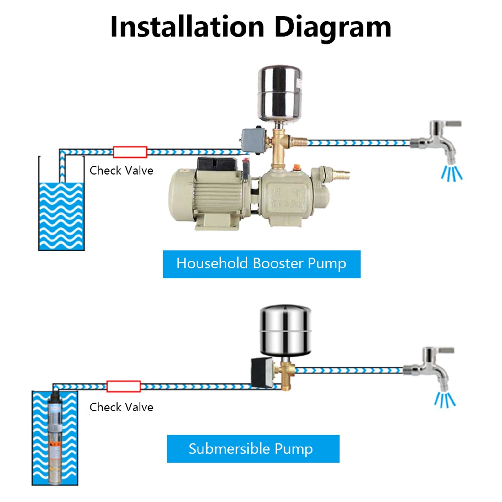 Suitable for most of water pumps, such as self-priming water pump, injection water pump, garden water pump, etc.