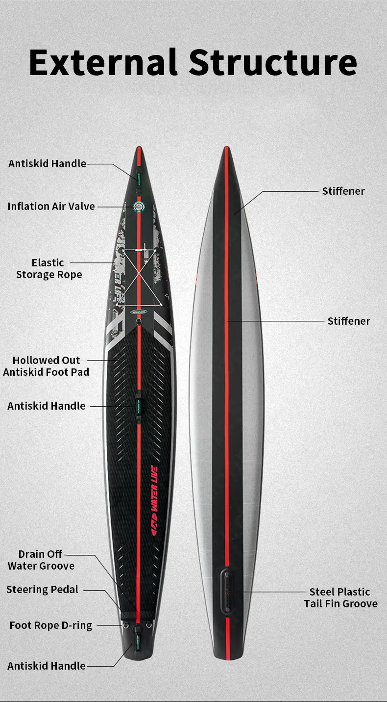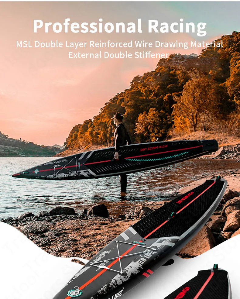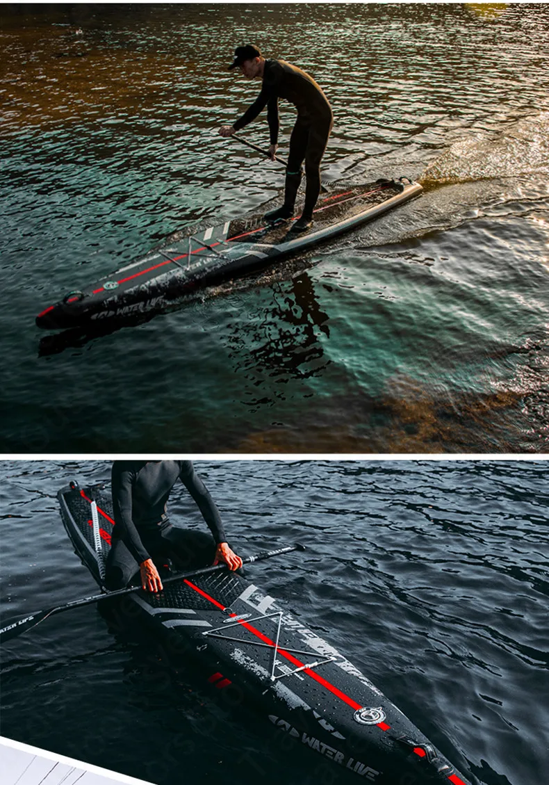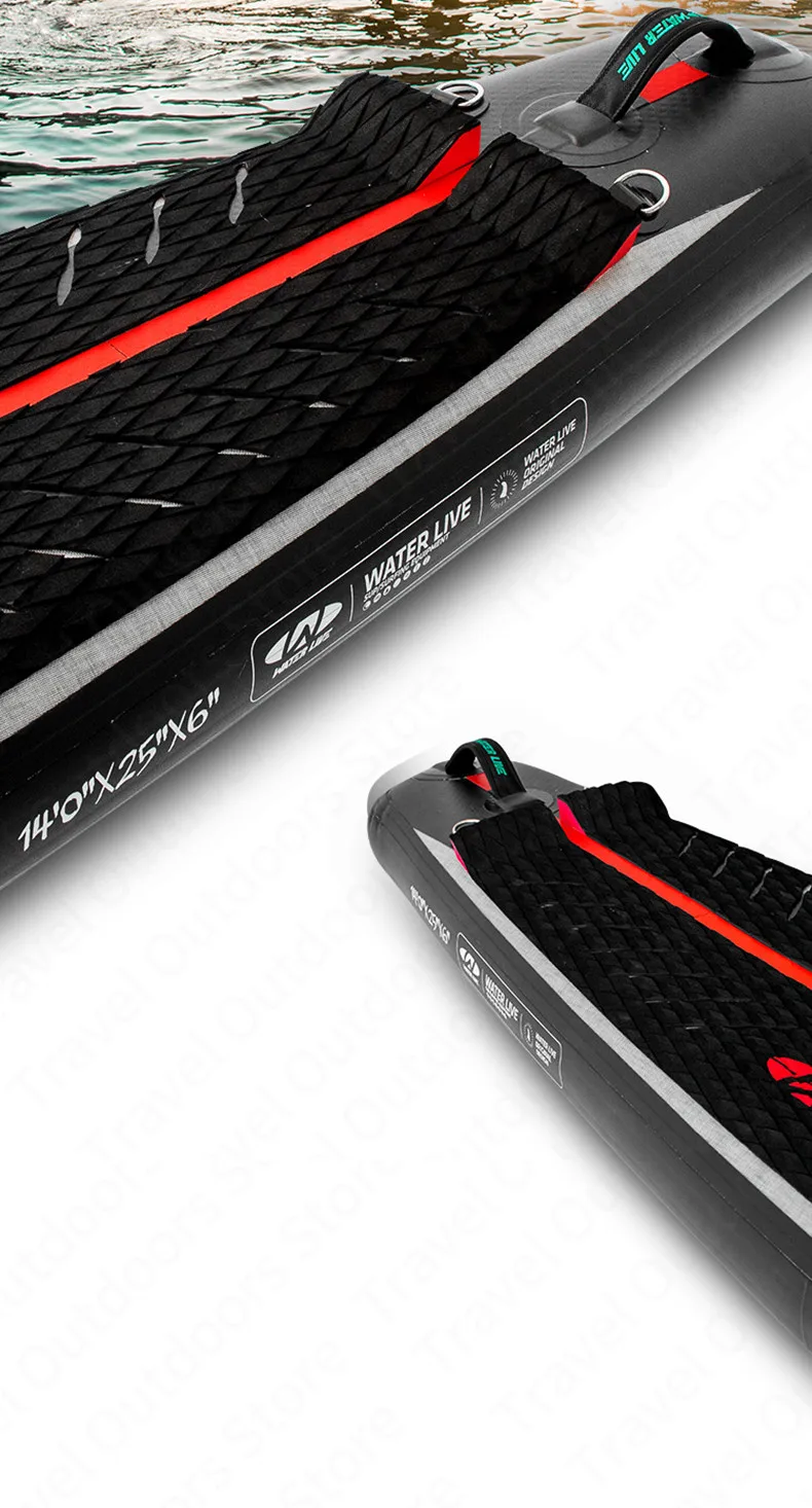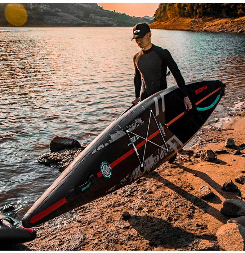 Set B:ZhuMo 140"Surf Board+Backpack+Two Way Air Pump+Plastic Steel Tail Fin+Repair Tank+Accessories Bag+Safety Foot Rope+Red Three Section Carbon Fiber Paddle