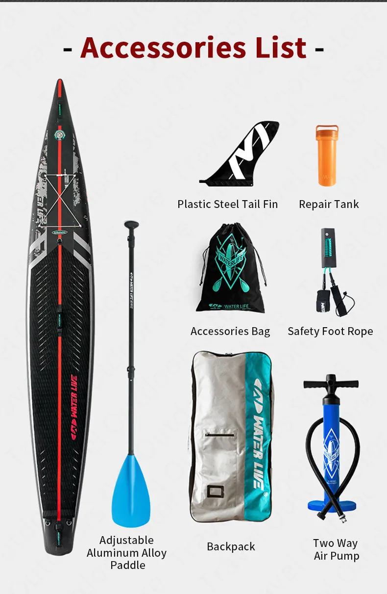 Set A:ZhuMo 140"Surf Board+Backpack+Two Way Air Pump+Plastic Steel Tail Fin+Repair Tank+Accessories Bag+Safety Foot Rope+Three Section Aluminum Alloy Paddle