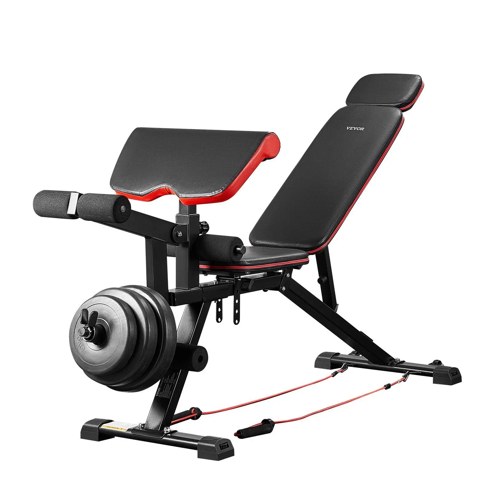 - Removable Preacher Pad: This weight bench for full body workout comes with a detachable leg extension and a 19-inch wide preacher pad, which can be adjusted to 5 different positions. The double-leg rest structure is compatible with 3-4 weight plates (1/2-inch dumbbell rod). It’s perfect for exercises like leg extensions and bench presses