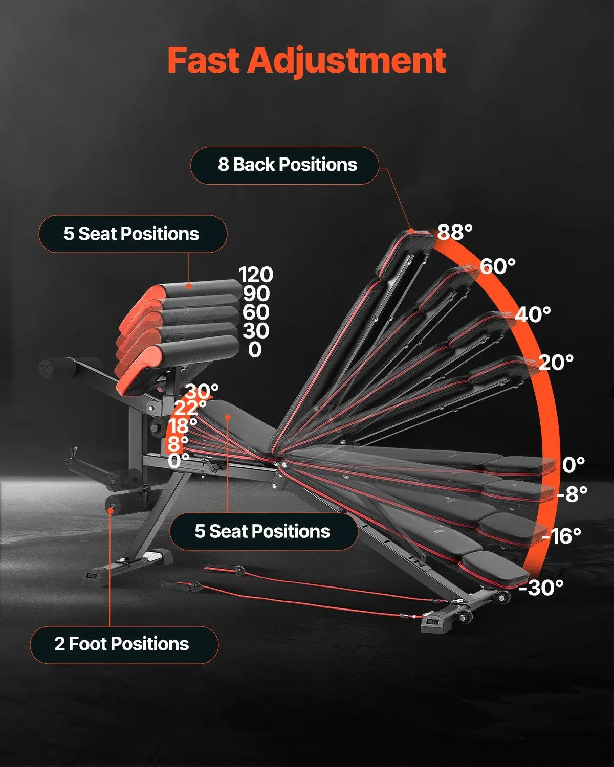 - Adjustable and Multi-purpose: This adjustable strength training bench features 8 back positions, 5 seat positions, and 2 footrest positions. By simply pulling the quick-release bolts, you can adjust to your preferred position, which will automatically lock into place. It allows full flexibility to strengthen and work all muscle groups