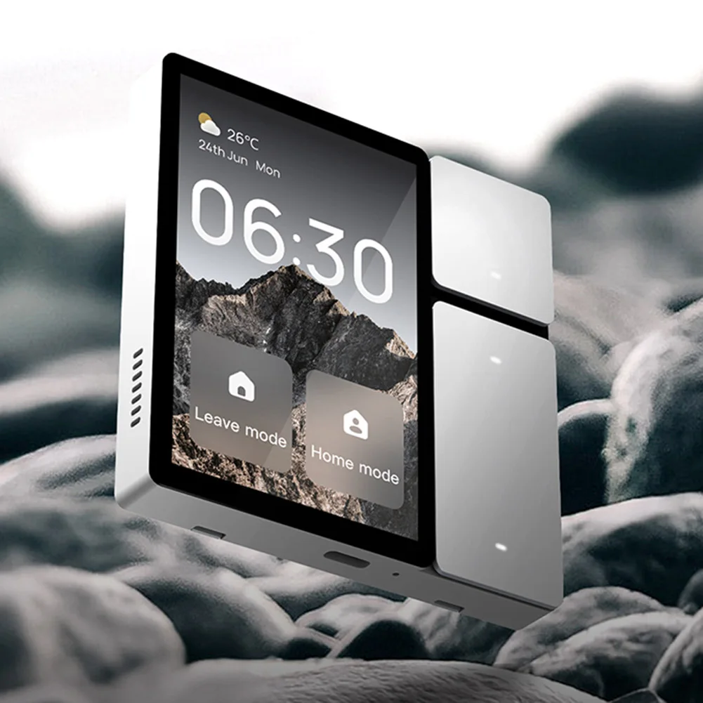 1. Versatile Interactive Device: The smart touch screen is a multi-functional interactive device that integrates a screen, three physical buttons, three relay channels, and an infrared remote control. Control various home devices and scenes directly from the screen, replacing traditional switches with the relay channels for lighting control.
