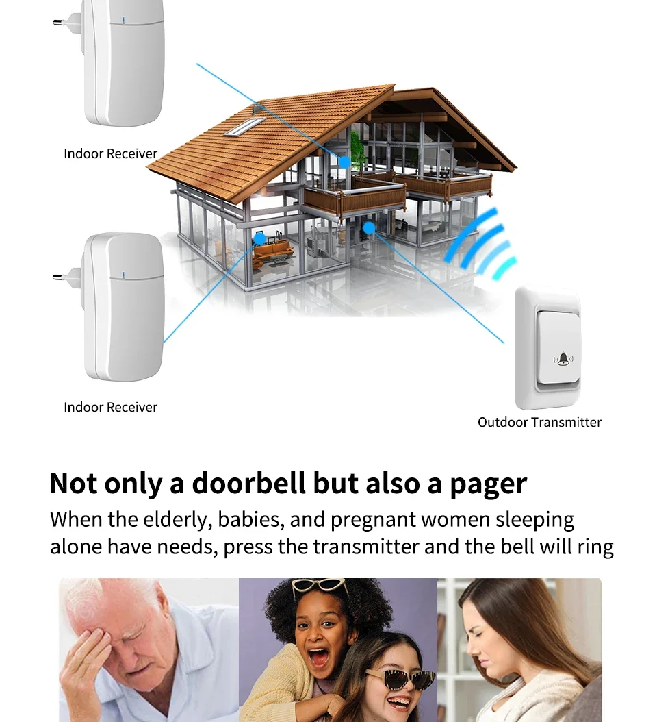 HomeDoorbell Like AlarmWireless Doorbell No Battery required Waterproof Self-Powered Door bell Sets Home Outdoor Kinetic Ring Chime Doorbell