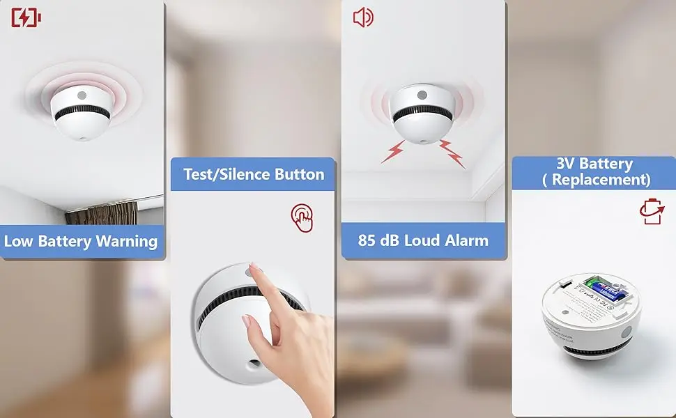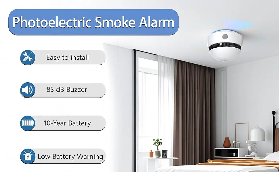 With the smoke detector 10 year battery, you can trust this device for a decade of smoke detection without worrying about constant battery replacements in a short time. With a loud 85dB fire alarm, you’ll never miss a warning