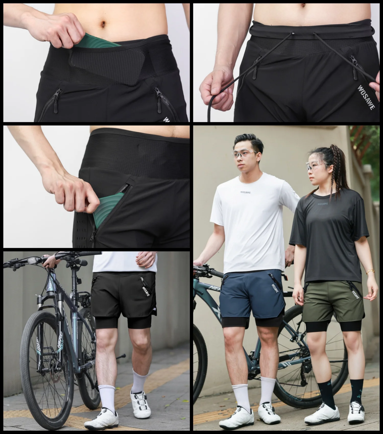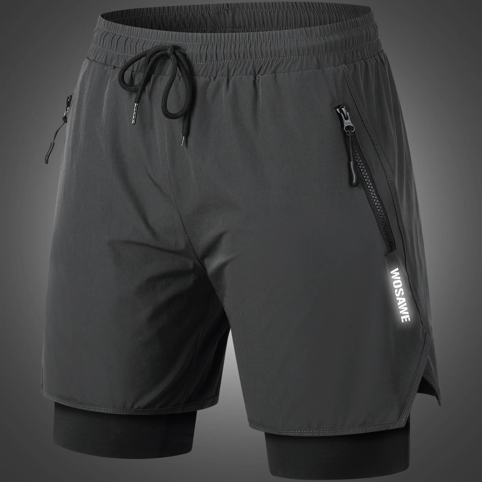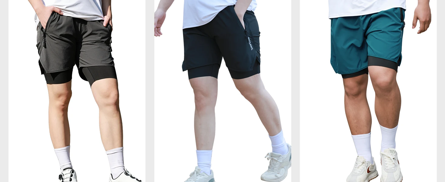 [Functional Pockets] Two side zipper pocketsof outer shorts and an insert pocket on the right thigh of inner layer for securely storing essentials.
