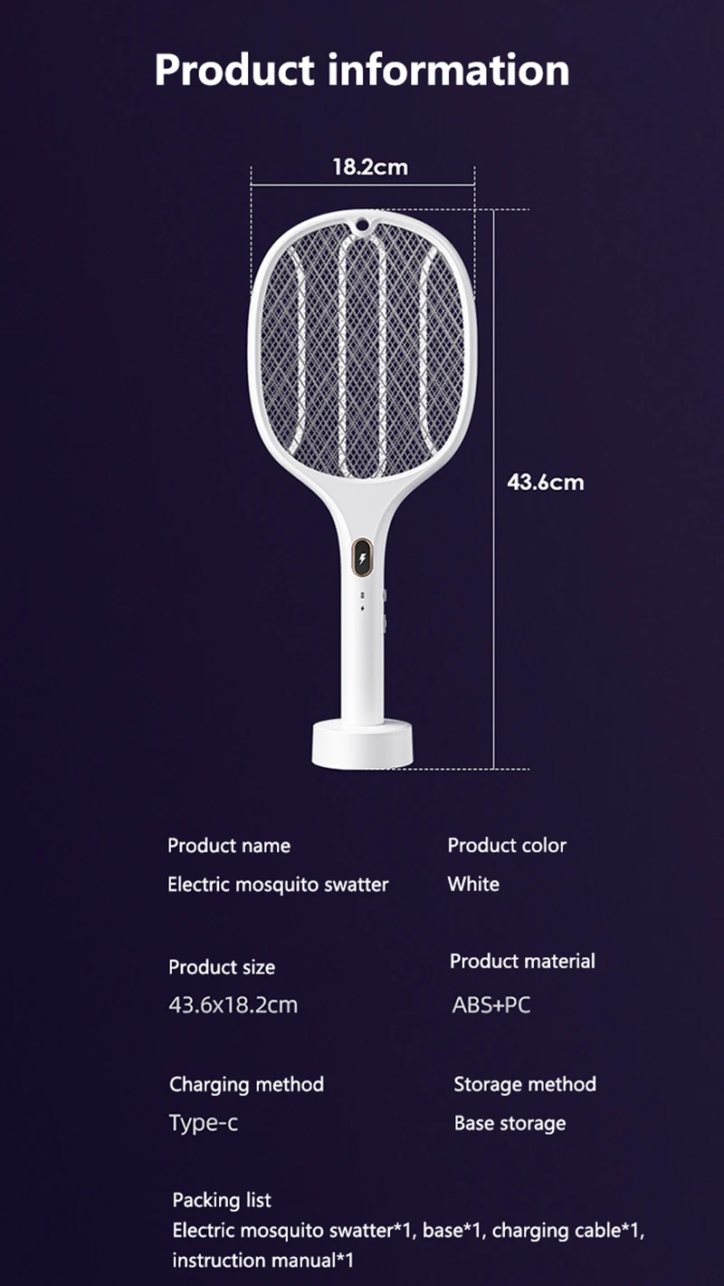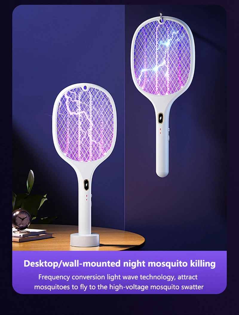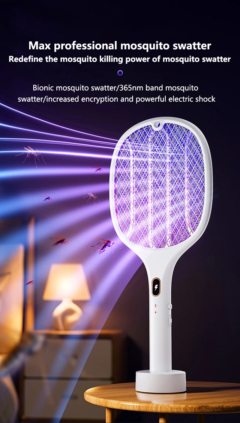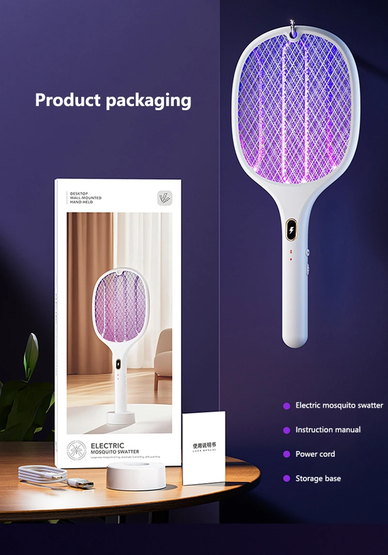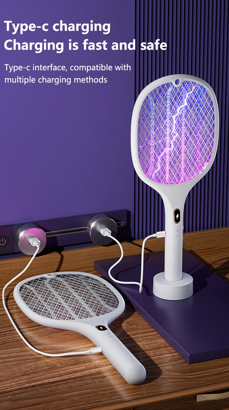 1. Rechargeable multifunctional purple light mosquito swatter;