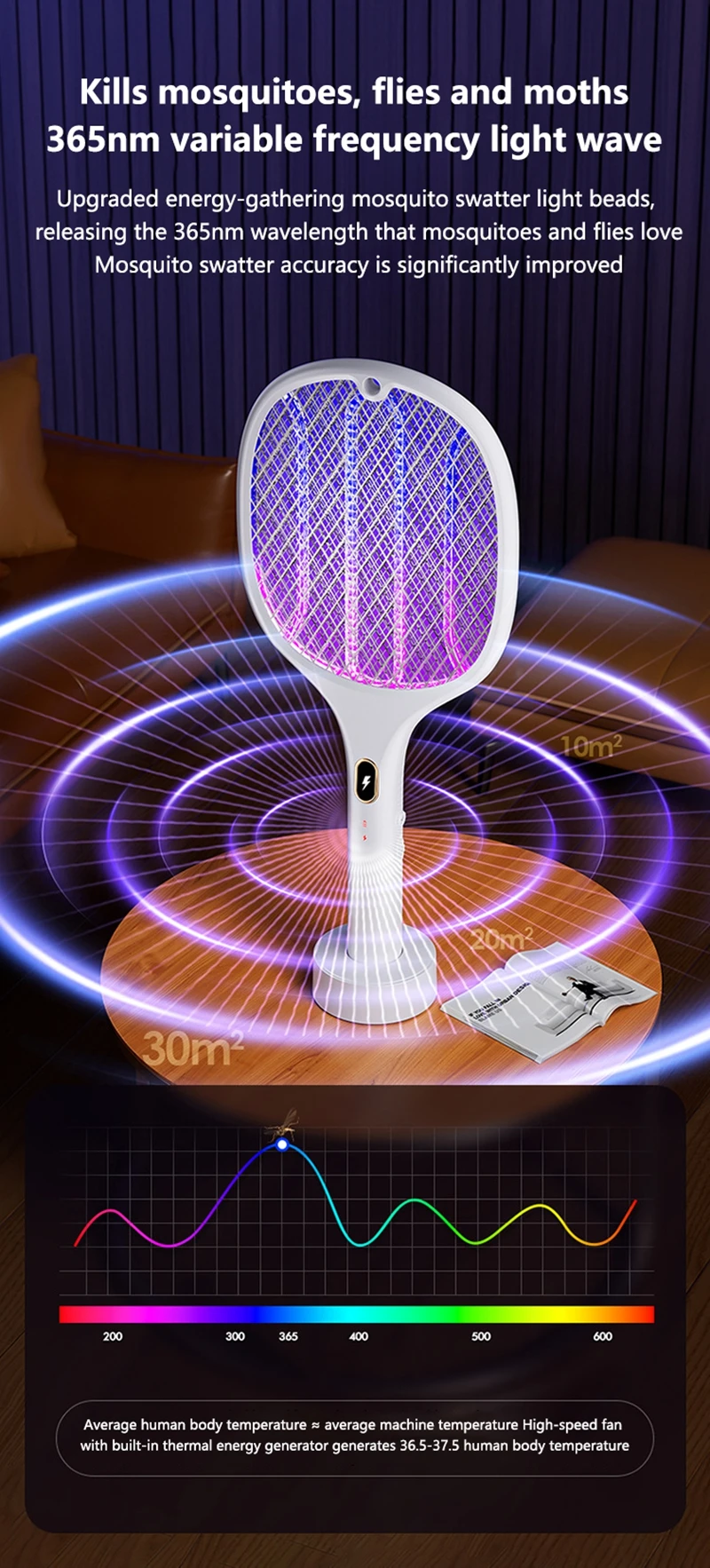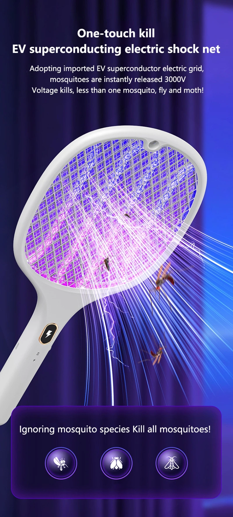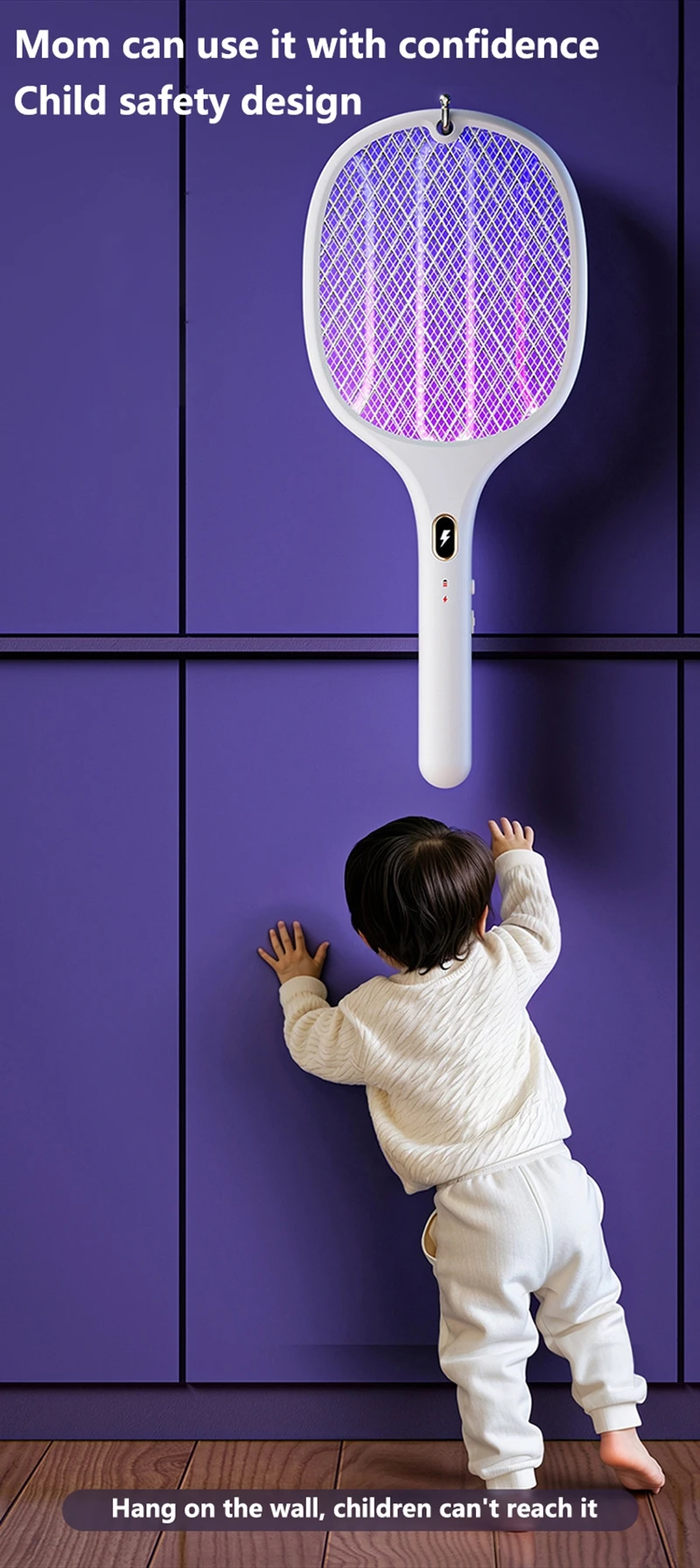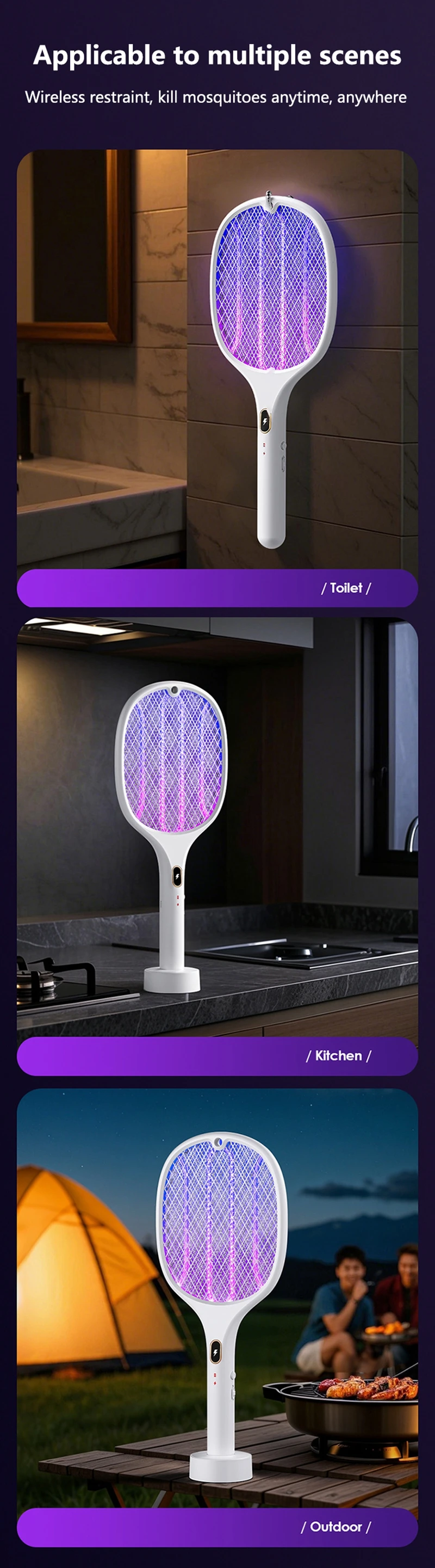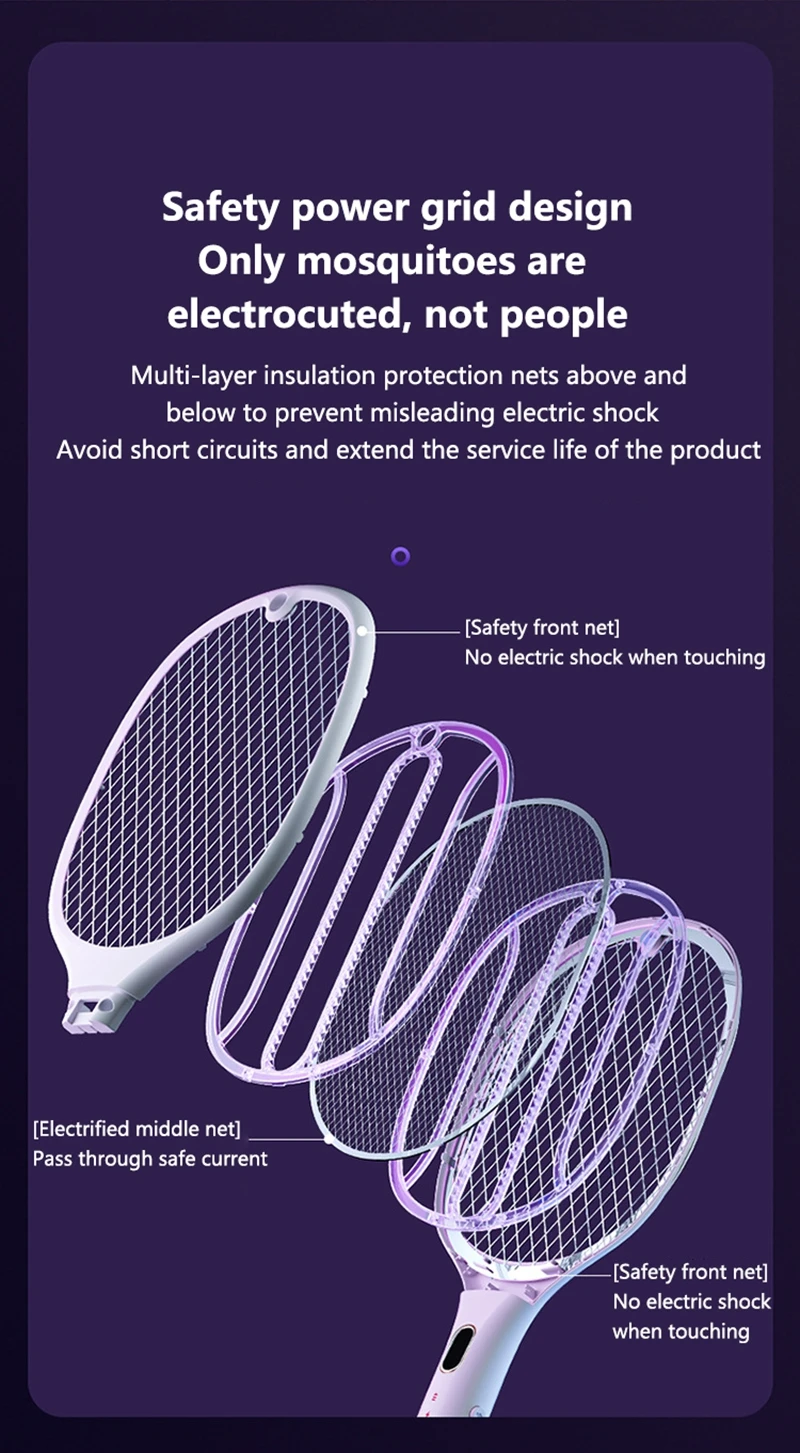 1. Rechargeable multifunctional purple light mosquito swatter;