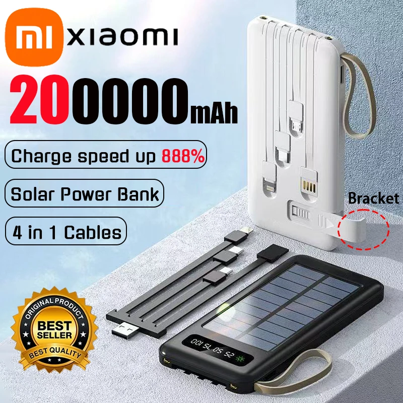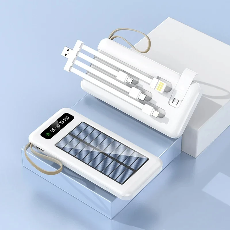 Xiaomi Solar Power Bank 50000mAh Large Capacity Mobile Power Fast Charging Battery Dual USB 4 Cables For iPhone Samsung Huawei