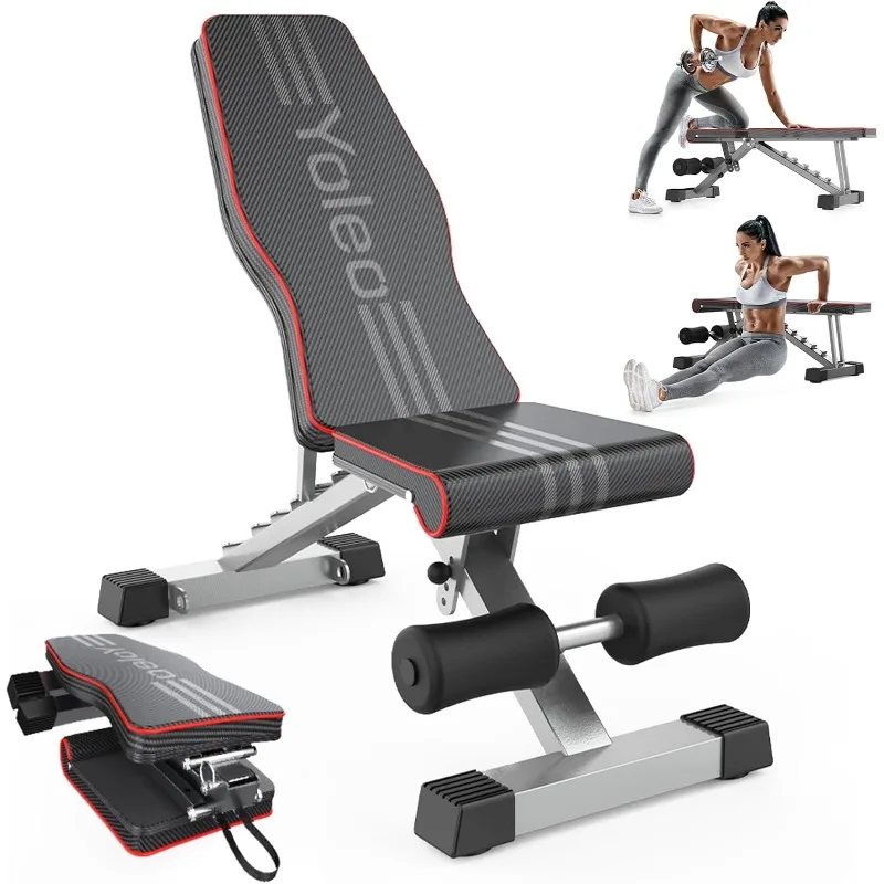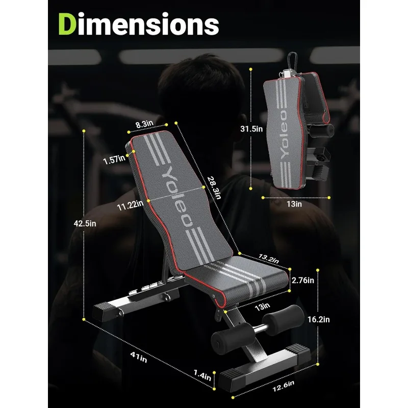 - 【Full Body Workout】Yoleo provides an effective adjustable weight bench. You can enjoy different exercises in it for the full body such as bench press, chest press, shoulder press, reverse fly, row, incline curl, and tricep dip